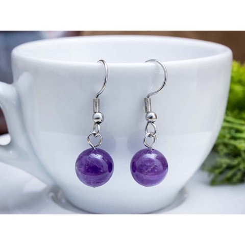8 mm-es ametiszt ásvány gyöngyökből készült lógós fülbevaló. Letisztult ékszer, melyet önmagában is viselhetsz, de választhatsz a hozzá passzoló ásvány karkötők közül is. Amit az ametisztről érdemes tudnod:Az ametiszt a kvarccsoport legkedveltebb köve, az achát ásvány belső felszínén növekszik. Míg a kristály maga jó néhány centiméterre nő meg, az azt tartalmazó geóda akár több méter hosszú is lehet. Ennek a fenséges kőnek a színe a mély lilától a halvány levenduláig terjedhet a benne lévő magnézium és vas mennyiségétől függően. Az ametiszt a királyi ékszerek tradicionális színe volt, mivel a lila a jólétet és gazdagságot szimbolizálta. Az ametisztet még ma is siker kövének tekintik, használja büszkén!Lelki gyógyhatás:Leonardo Da Vinci egyszer azt írta, hogy az ametisztben megvan az erő a gonosz gondolatok elűzéséhez és élénkíti az egyén intelligenciáját. Az ametiszt a haragot és a dühöt a szeretet pozitív energiájává alakítja át. Megtanít, miként változtassunk be rögzött viselkedési mintáinkon. Lila színével koronacsakránkhoz csatlakozva nagy segítségünkre lehet stresszes időszakainkban, mivel természetes nyugtató hatással bír. Segít alvászavarok esetén is, idegrendszeri stabilizáló hatása végett. Megakadályozza a visszatérő rémálmok ismétlődését. Használjuk ezt a követ meditáció során, nagyszerű segítség az elmélyülésben, mivel az ametiszt a bennünk lakó Istennel rezonál és segít kitárni az elmét az új gondolatok előtt.Testi gyógyhatás:Légzési és asztmatikus problémákkal szenvedőknek is hatékony segítsége lehet. Enyhíti a torokfájást, tisztítja a vért, kiegyenlíti a vérnyomást, ill. javítja a látást, sőt színvakság gyógyítására is használják. Jótékony hatással bír a bőrbetegségekre, gyakran használják migrénes fejfájás ellen is. Erősen méregtelenítő hatású.Mágikus hatás:Az ametiszt erősen védelmező kő, viselőjének segít kivívnia a jogos igazát, de védelmez tolvajok, betörők és átkok ellen.Csillagjegyei: Szűz, Nyilas, Vízöntő, Halak, KosCsakrái: Gyökércsakra, Koronacsakra, Napfonat-csakraNikkelmentes ékszer.Egyedi tervezés alapján készült kézműves ékszer.Amennyiben egyéni kérésed van, vagy nem találod, amit szeretnél, keress engem bátran. Figyelem! Az ásványokat, kristályokat az őskor óta használják a test, a lélek és az érzelmek harmonizálására. Az ókori kultúrákban kifejezetten elterjedtek voltak. Az évezredek alatt számtalan tudás és tapasztalat gyűlt össze róluk. Ásvány ékszereink leírásánál a meghatározó szakirodalom alapján készült összegzések olvashatók. Fontos! Az ásvány ékszerek viselése, az ásványok és kristályok gyógyításban, alternatív terápiaként való használata nem helyettesíti a modern orvostudományt, a gyógyszeres kezelést. Betegség esetén az öngyógyítás helyett kérjük, forduljon szakemberhez!