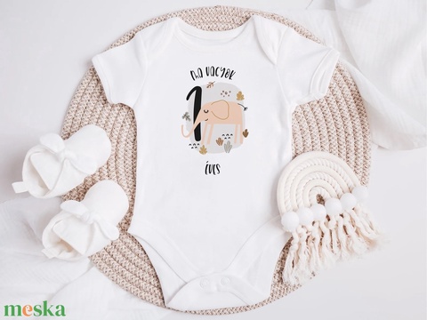 Születésnapra elefántos ajándék, szafari állatos baba body