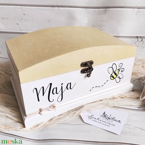 Emlékőrző fadoboz - Kis méhecske (névre szóló kincses doboz)