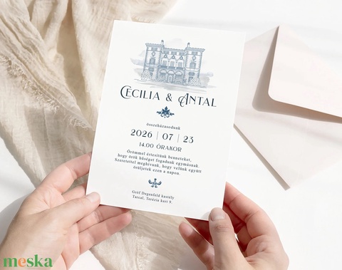 Gyönyörű romantikus grafikával illusztrált meghívó tetszeni fog a barátaitoknak és a családnak is! A meghívó egy oldalt nyomtatott prémium minőségű matt papírból készül.