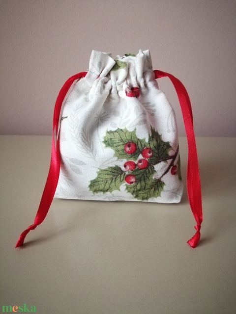 Karácsonyi, ünnepi kis méretű vászon ajándékzsák