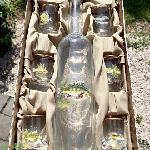 Hal mintás antik retro festett pálinkás pohár készlet, pecásoknak horgász ajándék, hal minta