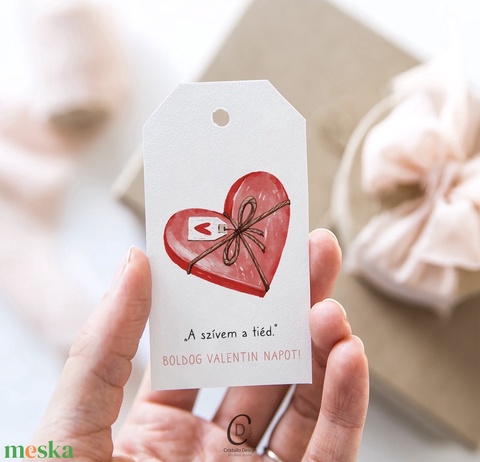 Valentin napi idézetes ajándékkísérő, szívecskés ajándékátadó kártya szett 4 db