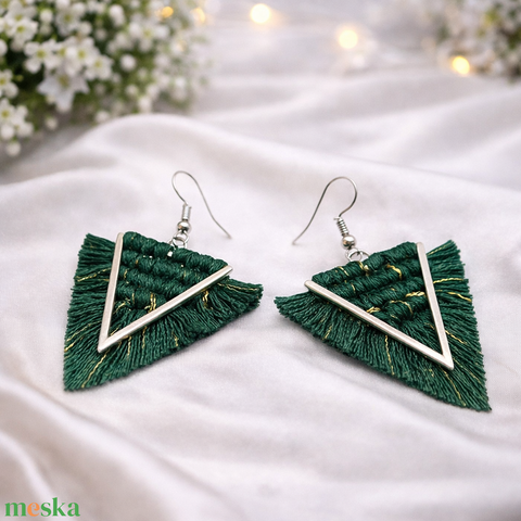 Viviana makramé fülbevaló - zöld aranyszállal