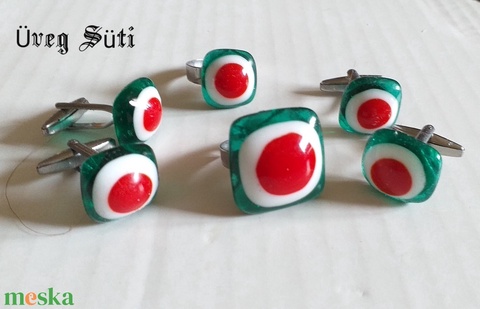 EGYEDI MEGRENDELÉS Gyűrű+ mandzsetta Tricolor Kokárda nemzeti színű üvegékszer szett