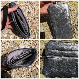 Akciós - Ezüst flitteres alkalmi textil kézitáska, csuklótáska
