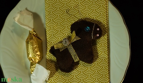 Arany-barna karácsonyfadísz, csillogó filc rénszarvasok, felakasztható textil dekoráció, filc karácsonyfadísz