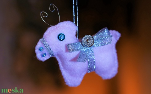 Ezüst-rózsaszín karácsonyfadísz, csillogó filc rénszarvasok, felakasztható textil dekoráció, filc karácsonyfadísz