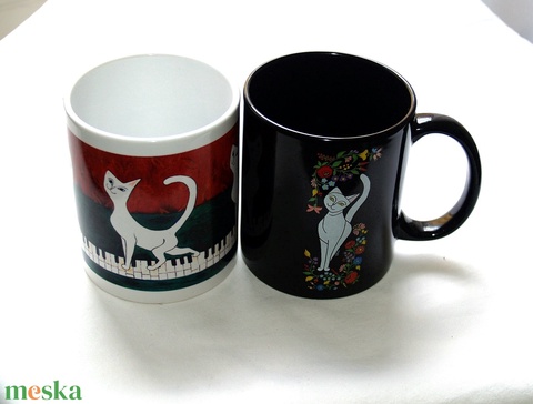 2 db Kalocsai fekete-fehér cicás bögre kerámia