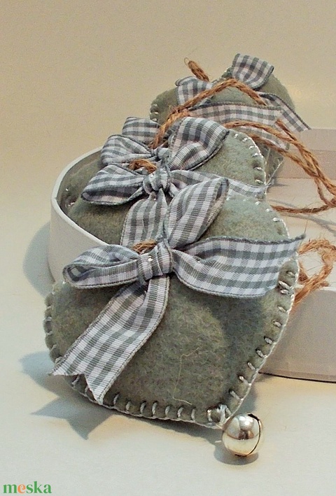 Szürke kockás karácsonyi filc díszek