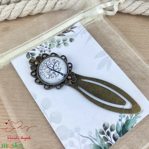 Fehér életfa mintás üveglencsés könyvjelző egyedi ajándék ballagásra évzáróra pedagógusnak születésnapra névnapra nőnek