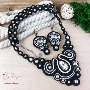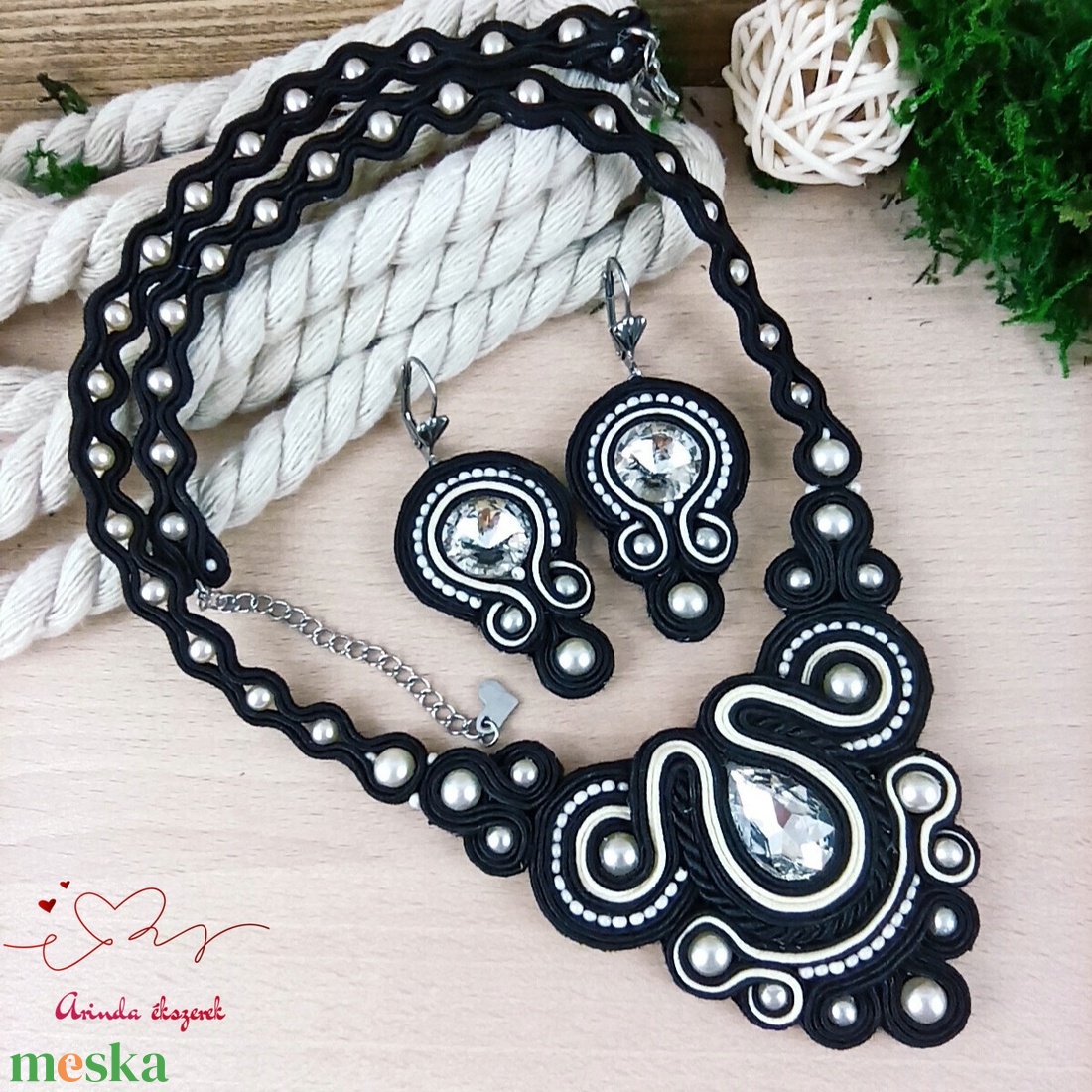 Fekete-krém elegancia esküvői ékszer sujtás nyaklánc fülbevaló szett