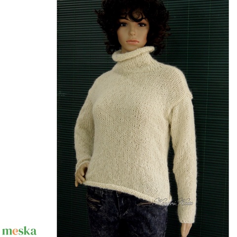 "TEKNŐC" ALPAKA-PULCSI - exkluzív kézzel kötött pulóver / tört-fehér KÉSZLETEN