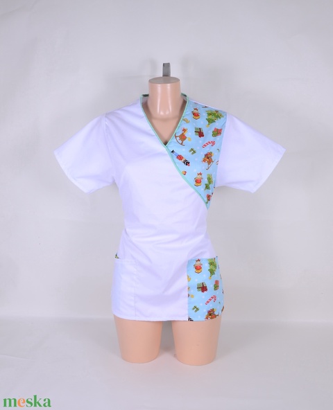 ruha & divat, női ruha, tunika, cuki, ápoló, ápolónő, orvos, orvosruha, nővér, szépségipar, egészségipar, kozmetika, kozmetikus, mincsi, karcsúsított, tunika, felső, nadrág, szett, karácsony
