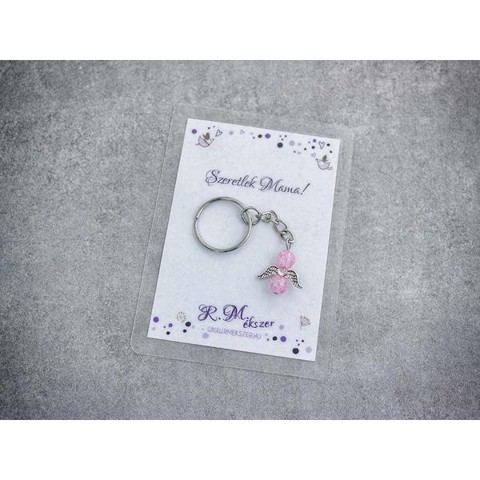 Szeretlek Mama rózsaszín angyal medálos kulcstartó