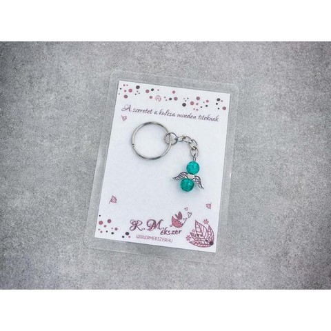 A szeretet a kulcsa pávakék angyal medálos kulcstartó