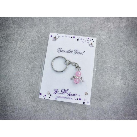 Szeretlek Tesó rózsaszín angyal medálos kulcstartó