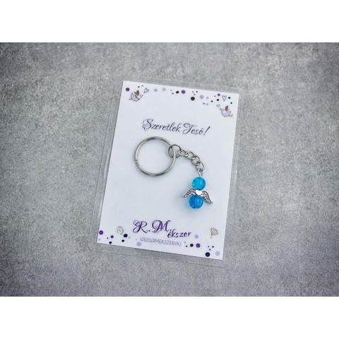 Szeretlek Tesó kék angyal medálos kulcstartó