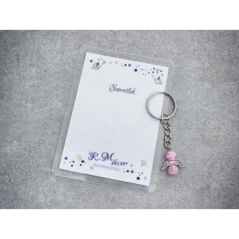 Szeretlek rózsaszín angyal medálos kulcstartó