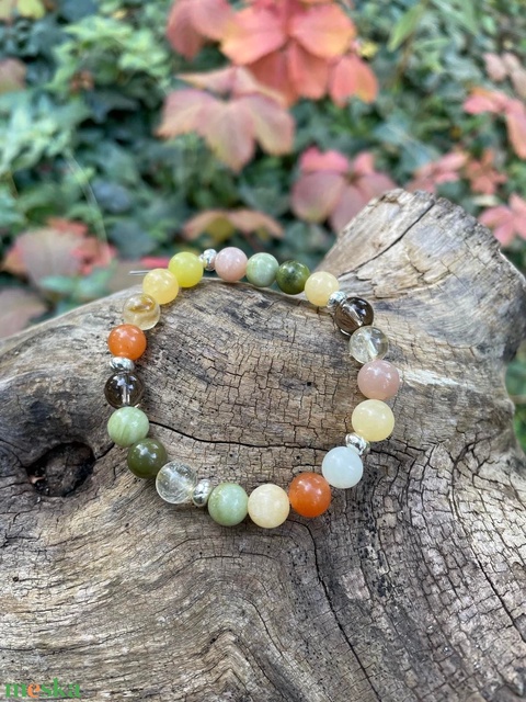 Ezúttal nyolc csodálatos ásványgyöngyöt fűztem fel erre a karkötőre, hogy egymás szépségét és jótékony hatását erősítve támogassanak téged a mindennapokban és mosolyt csaljanak az arcodra