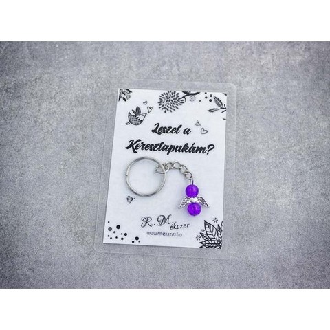 Leszel a Keresztapukám lila angyal medálos kulcstartó
