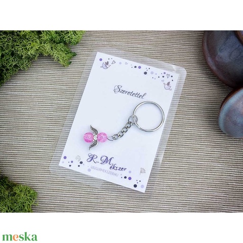 Szeretettel rózsaszín angyal medálos kulcstartó