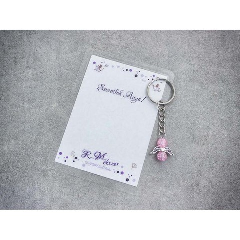 Szeretlek Anya rózsaszín angyal medálos kulcstartó