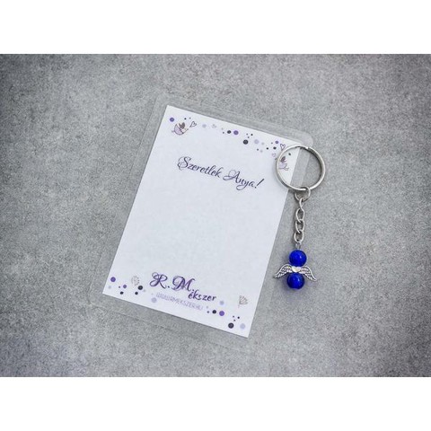 Szeretlek Anya sötétkék angyal medálos kulcstartó