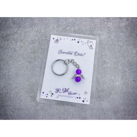 Szeretlek Dédi lila angyal medálos kulcstartó
