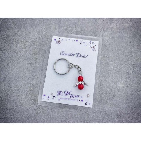 Szeretlek Dédi piros angyal medálos kulcstartó