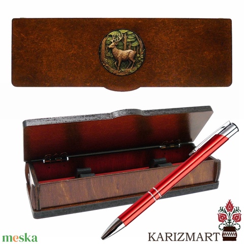 Tolltartó doboz golyóstollal egyedi felirattal szarvas #IT02-08
