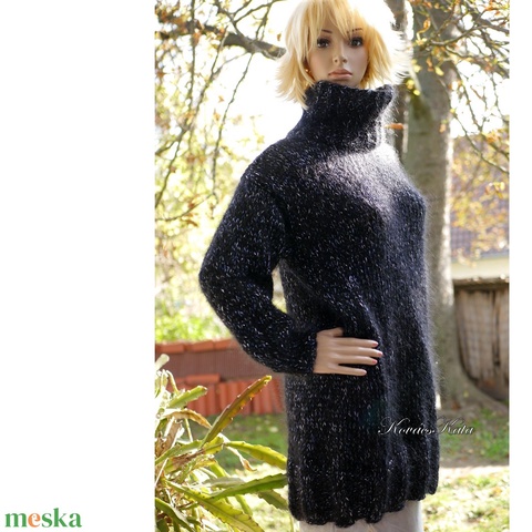 COLETTE-LUX - oversized kézzel kötött trendi pulóver ruha / fekete