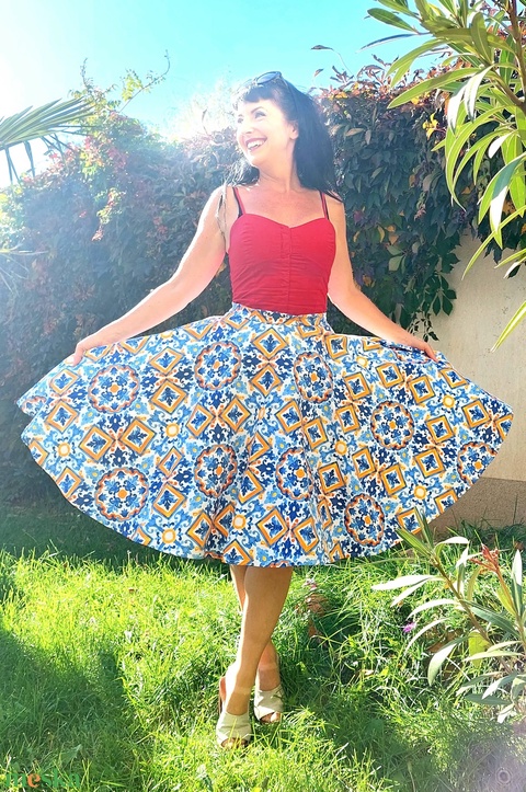 Folk Rockabilly szoknya csempe, azulejo, majolica mintás