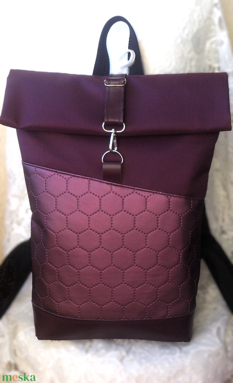 Padlizsán - gyöngyház hátizsák - rolltop - valódi bőrrel - vízálló - laptoptáska -