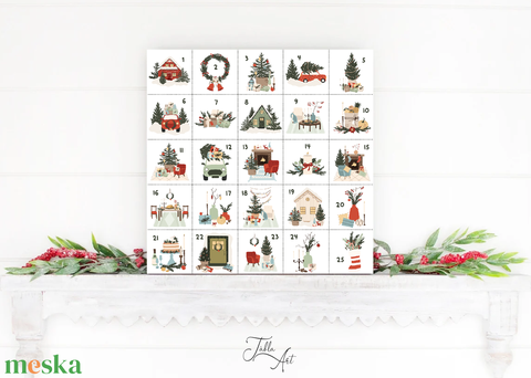 Adventi kalendárium 30x30 cm vagy 20x20 cm karácsonyi fa tábla