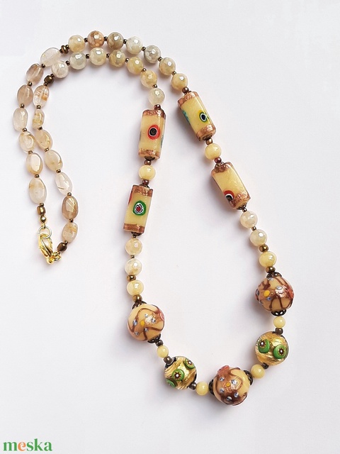 üveggyöngyök, damil, fém szerelékek, fém köztes, antik muránói üveggyöngyök, holdkő