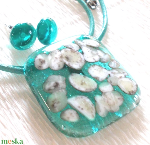 Kavicsos türkiz üvegékszer szett, ajándék névnapra, születésnapra.