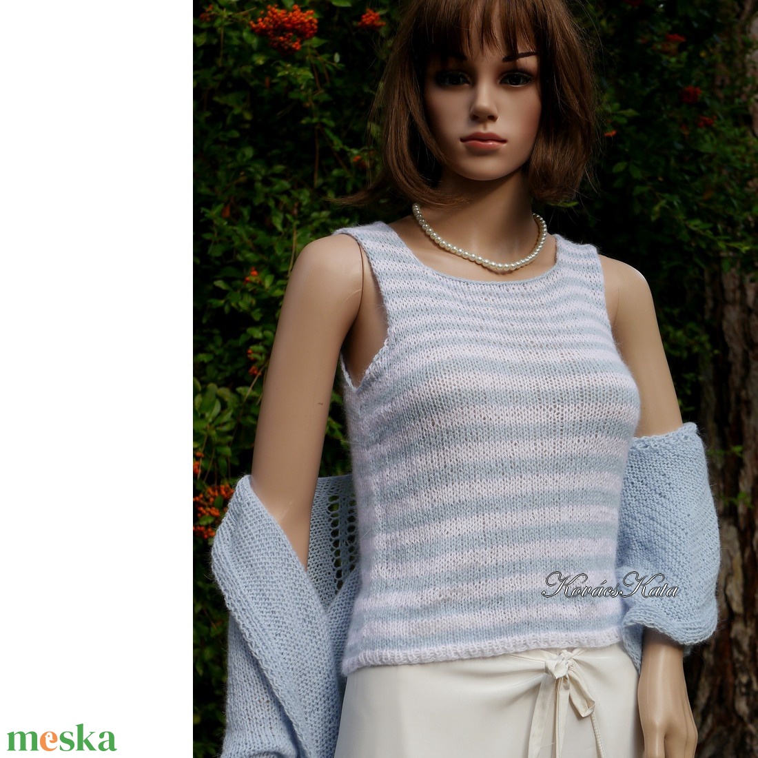 NYUSZI-TOP - exkluzív angóra felső, kézzel kötött pulóver / kék-fehér