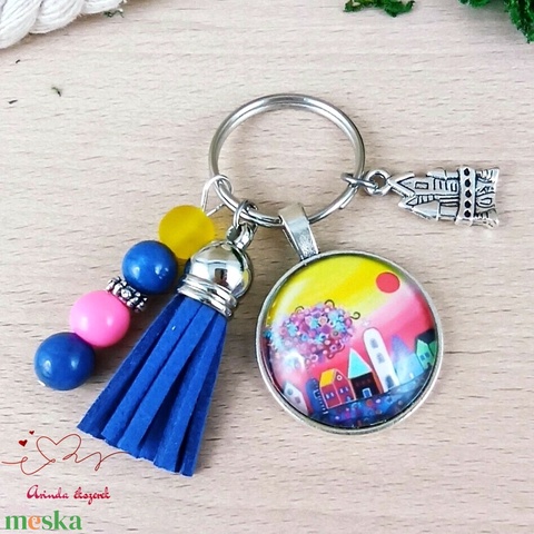 Naplemente kék bojtos üveglencsés kulcstartó táskadísz