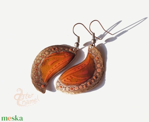 Narancssárga kalapált szélű tűzzománc fülbevaló