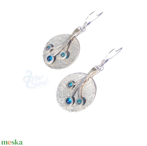 Türkizkék tűzzománc-bogyós kerek alpakka fülbevaló