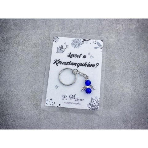 Leszel a Keresztanyukám sötétkék angyal medálos kulcstartó