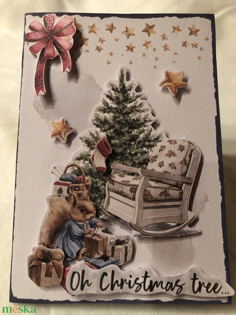 Papírból készült karácsonyi üdvözlőlap 3D technikával. A lap széthajtható ,így a belsejébe írhatod a legszebb kívánságaidat amit a szeretteidnek szánsz. Borítékkal együtt .Mérete:10x15 cm.