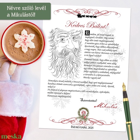 Névre szóló levél a Mikulástól (digitális kép vagy levélpapírra nyomtatva A/4-es méretben)