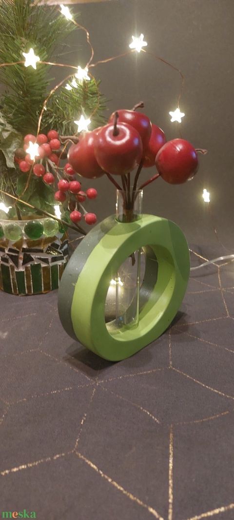 Zöld kerek akrilgyanta kémcső váza