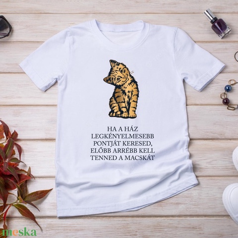 Macskakényelem - macskás póló idézettel - ruha & divat - női ruha - póló, felső - Meska.hu