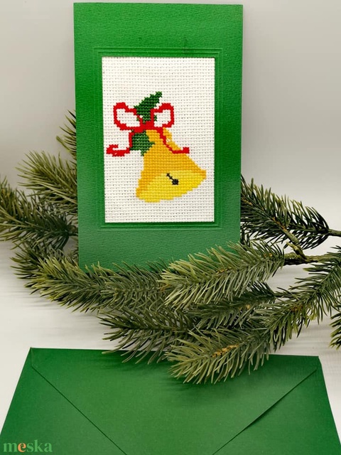Karácsonyi képeslap keresztszemes hímzéssel borítékkal