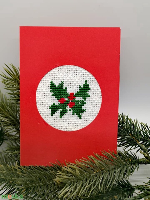 Karácsonyi képeslap keresztszemes hímzéssel