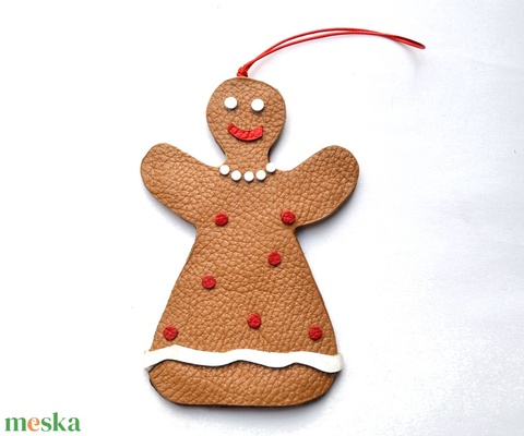 Mézeskalács baba-karácsonyfadísz valódi bőrből