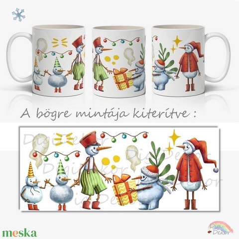 Aranyos hóemberes bögre gyerekeknek. 3 dl-es kerámia bögre kedves karácsonyi rajzokkal.